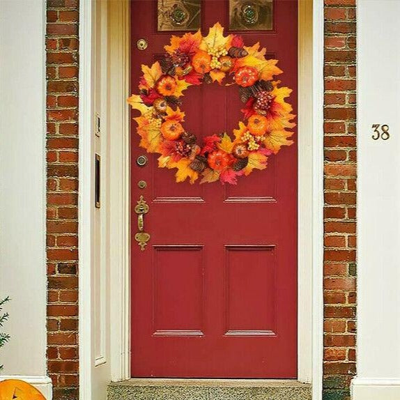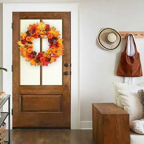 Festive Autumn / Fall Pumpkin Leaves Door Wreath