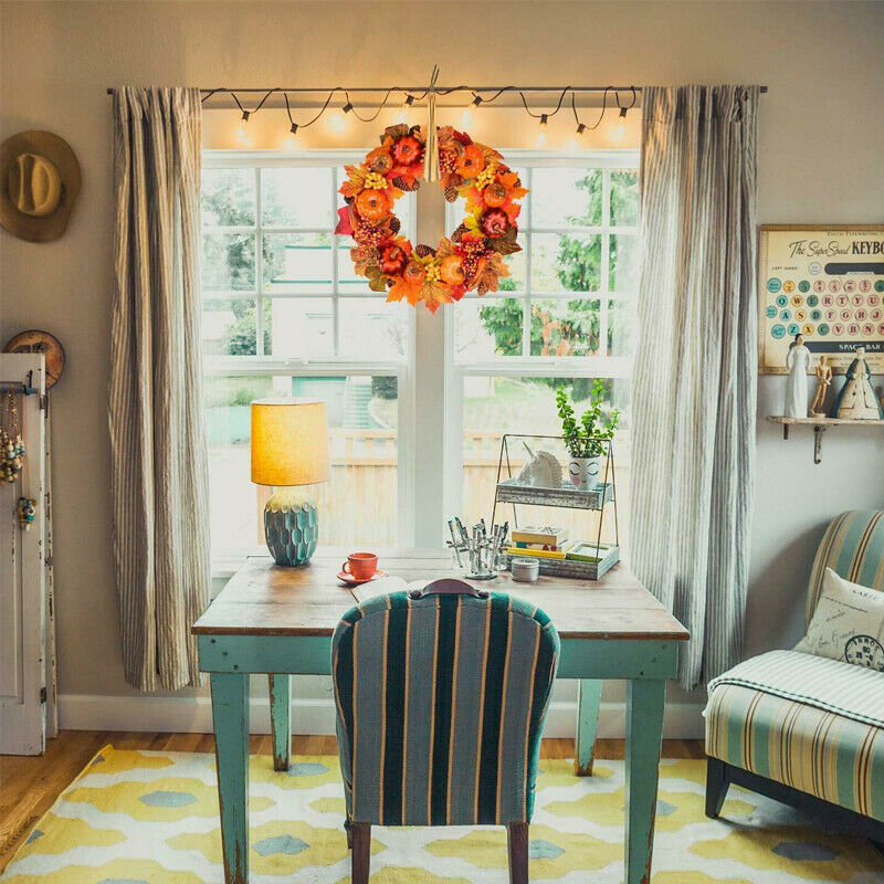 EASY TO HANG - Simply hang the outdoor fall wreath with a string on your door or mantle. It's also compact enough to lay over your dining table to remind you of beautiful autumn afternoons every time you enjoy a meal.