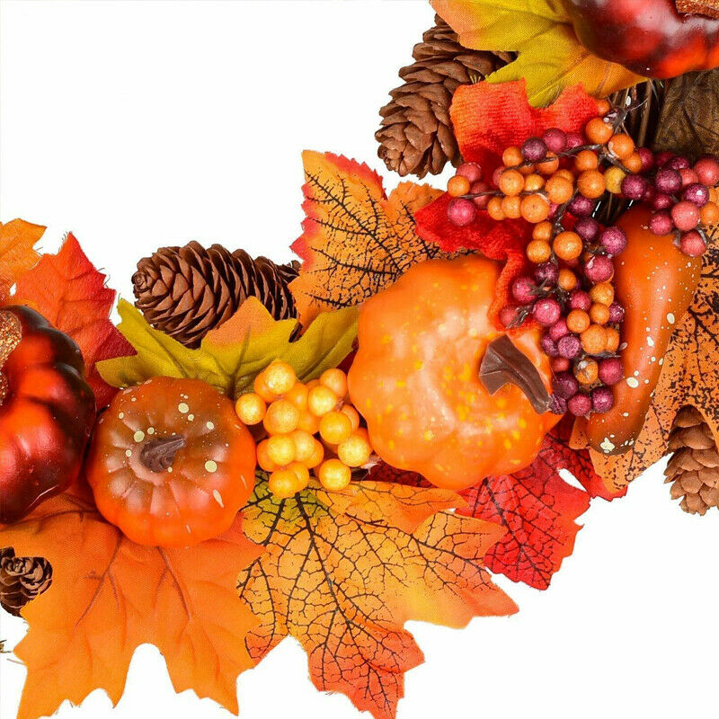 DURABLE - Made with high-quality materials, the pumpkin wreath is highly durable and can be placed both indoors or outdoors. Not only that, but all the components of the leaves wreath are fireproof, making it safe to use to decorate your home.