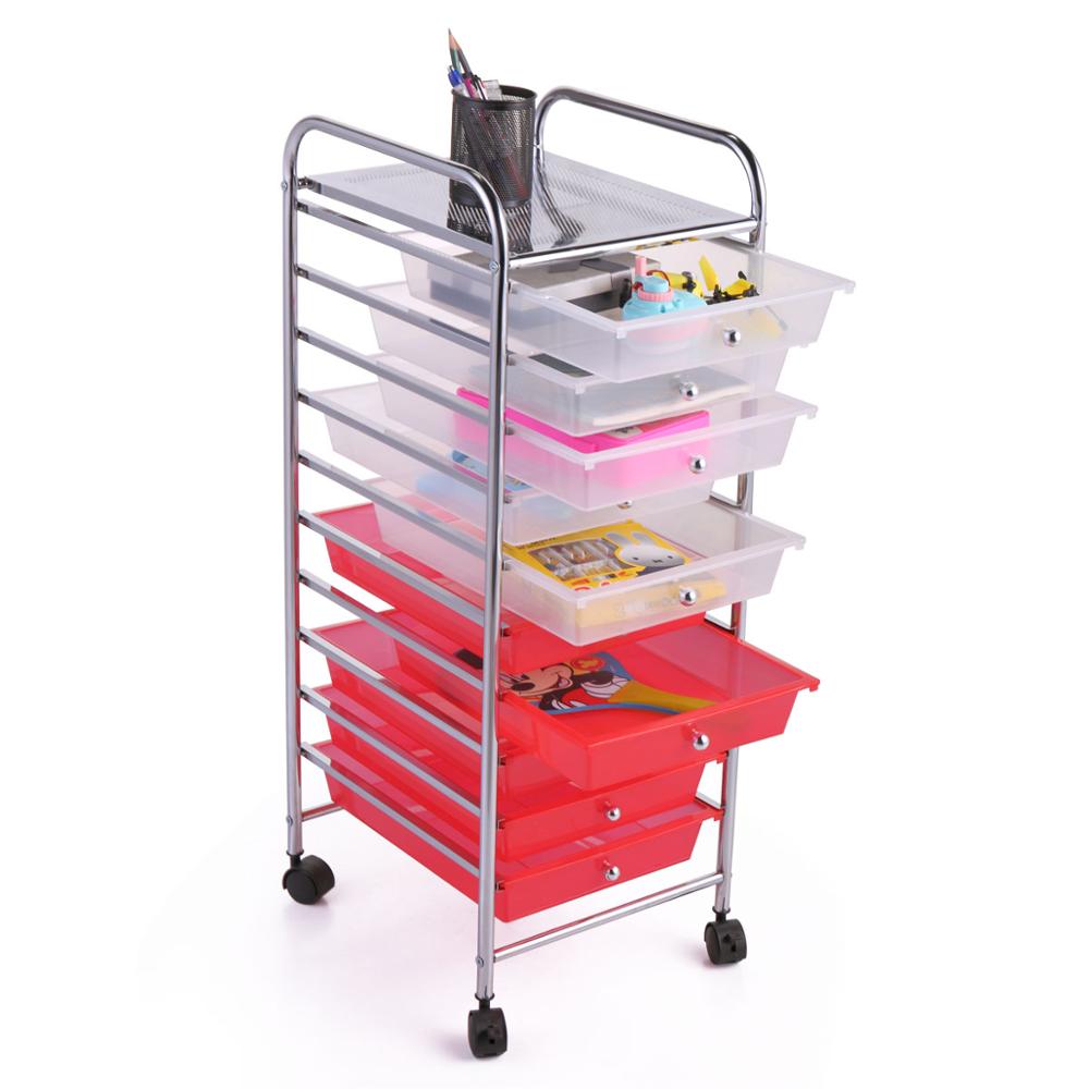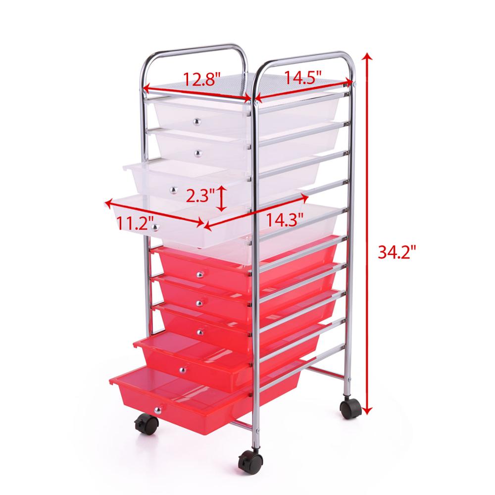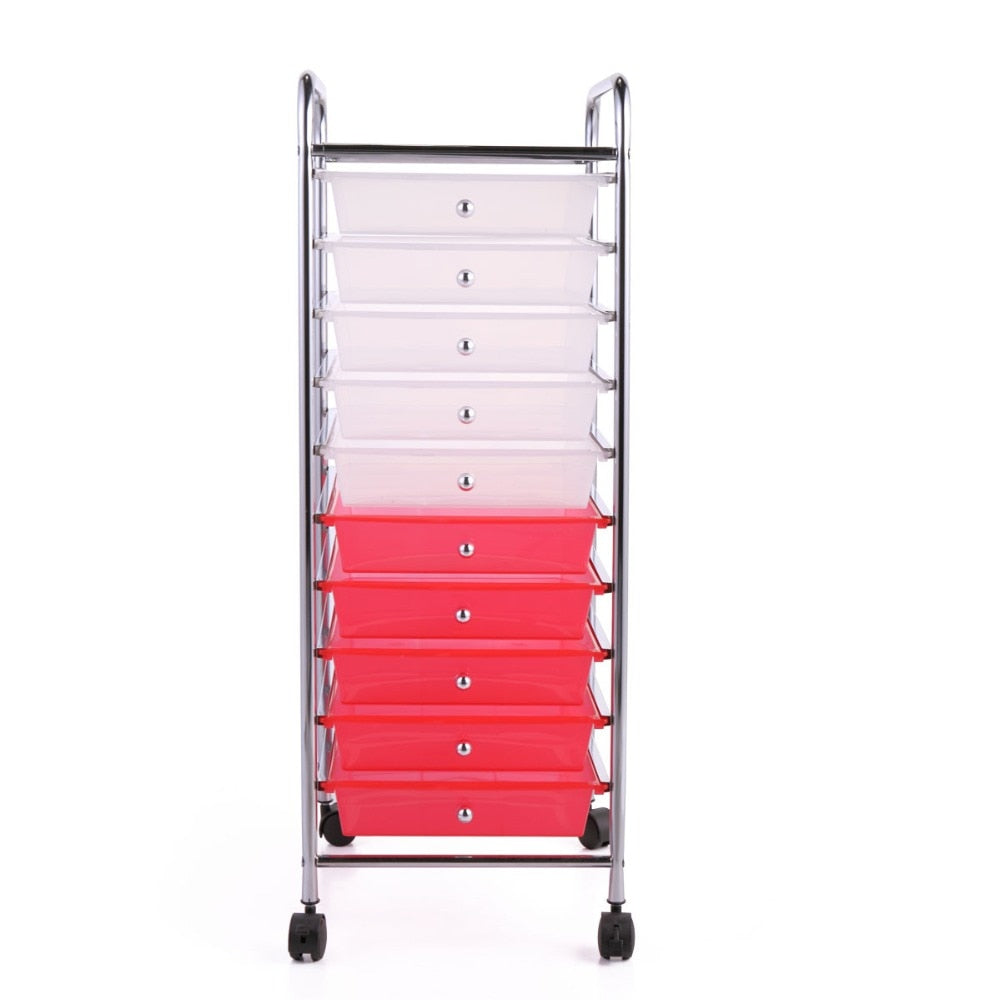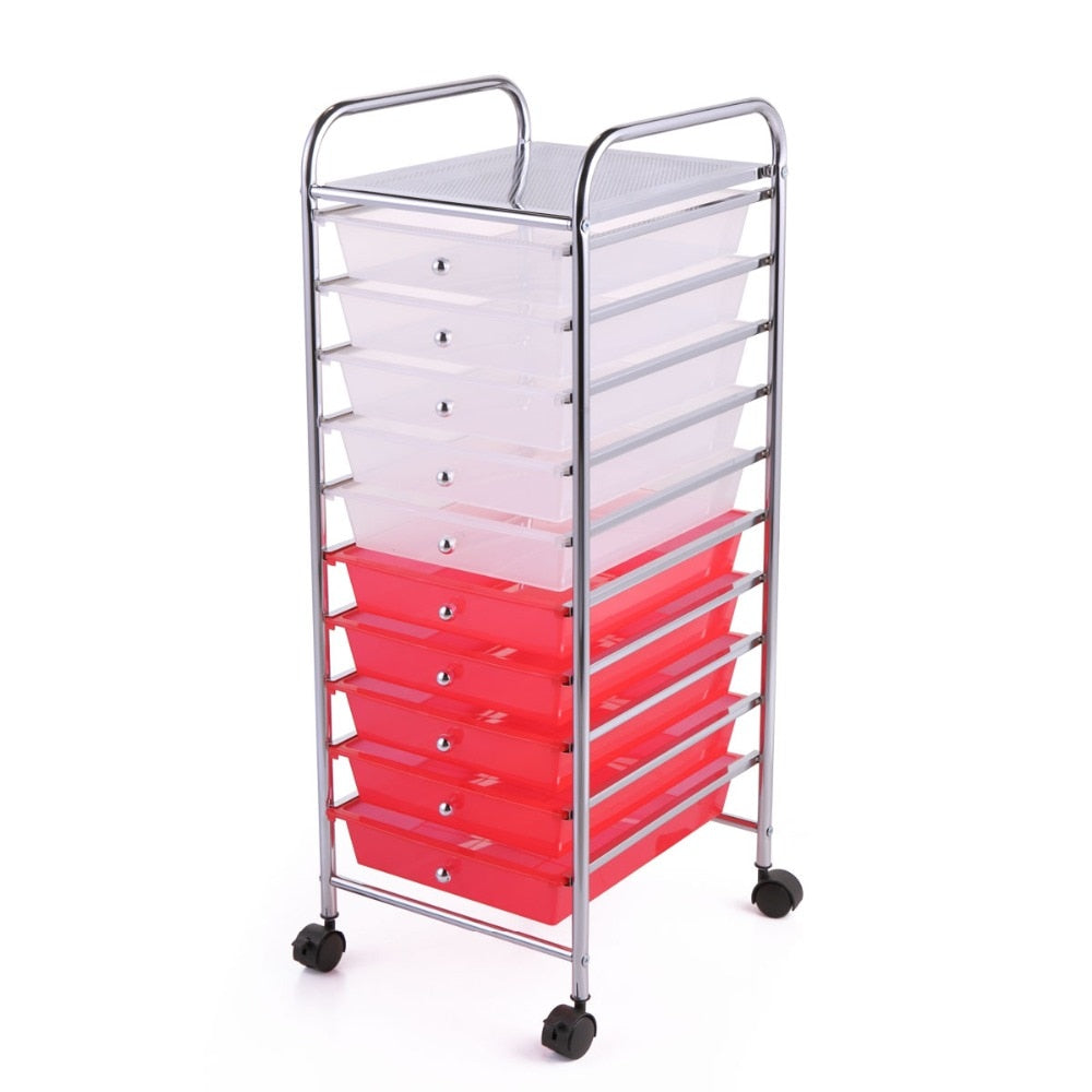 PORTABLE - Equipped with smooth-rolling wheels, the 10 drawer rolling cart can be rolled to any room inside your home. This function makes it easy to transport things from room to room, especially when you're re-organizing your home.