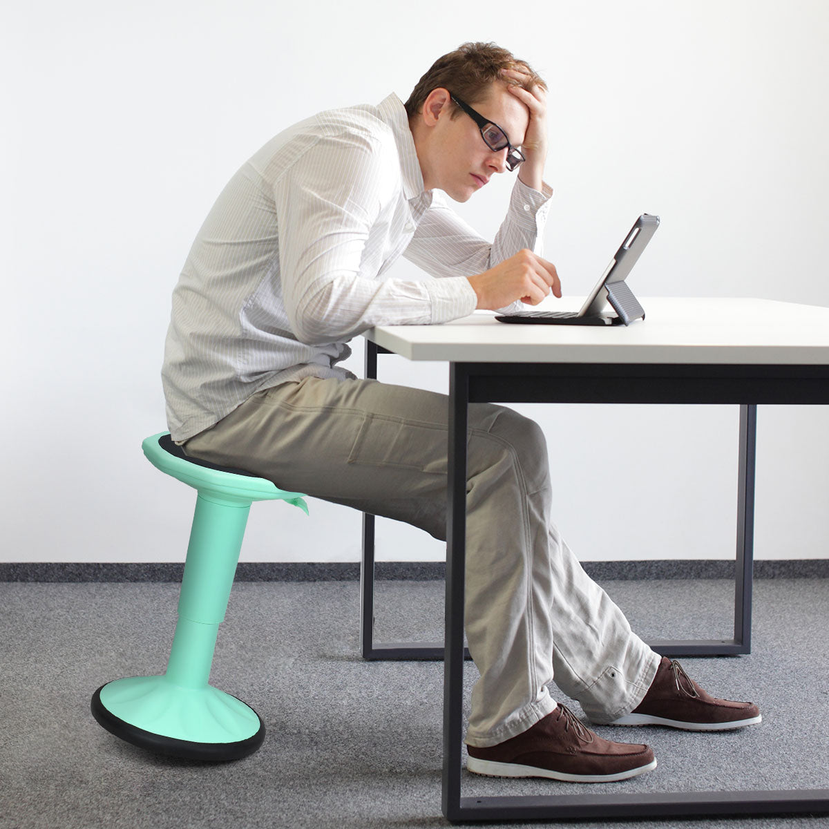 HEAVY-DUTY - Built with a sturdy base, the standing desk chair has a weight capacity of up to 250 lbs, making it suitable for most adults. Plus, the wobble chair can remain in pristine shape even if you use it longterm.