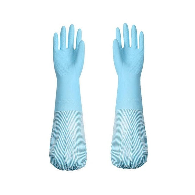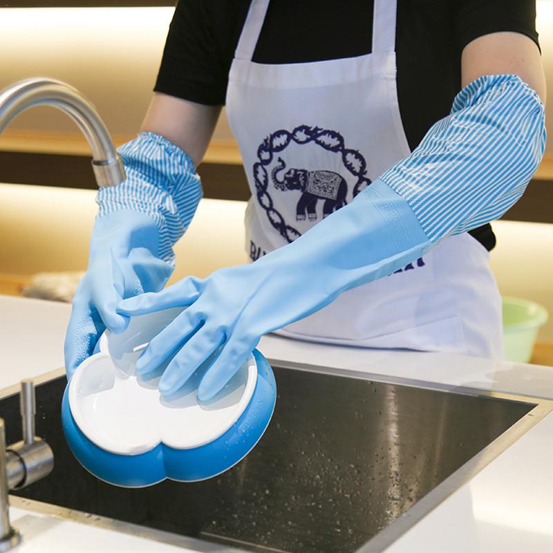 Layered with heavy-duty rubber, these gloves to wash dishes help get rid of those tough stains and leave your dishes dirt-free and hygienic. Plus, the cleaning gloves are extra large, making it less likely for the dirty water to splash and get you wet.