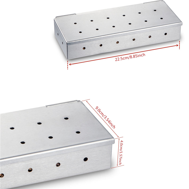 DURABLE - Made with high-quality stainless steel material, the grill smoker box conducts heat well but does not break down in the process. Withstanding extreme heat, the wood chip smoker box will be able to smoke your meat for a very long time.