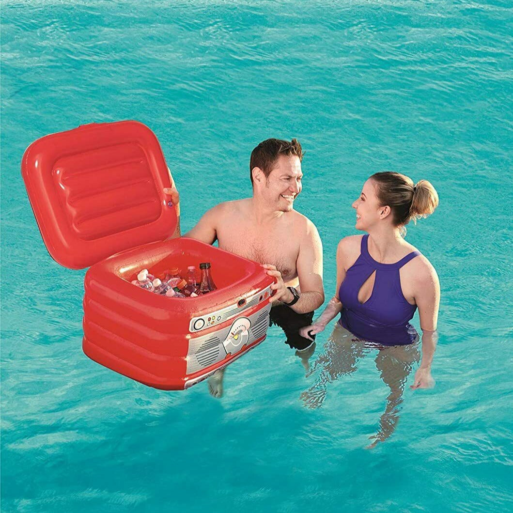 Best part of all, the inflatable cooler float is made with high-quality vinyl that's easy to wipe down and clean after a fun day in the pool. Enjoy chilling in the pool with a drink in hand by storing yummy drinks in our spacious floating cooler.