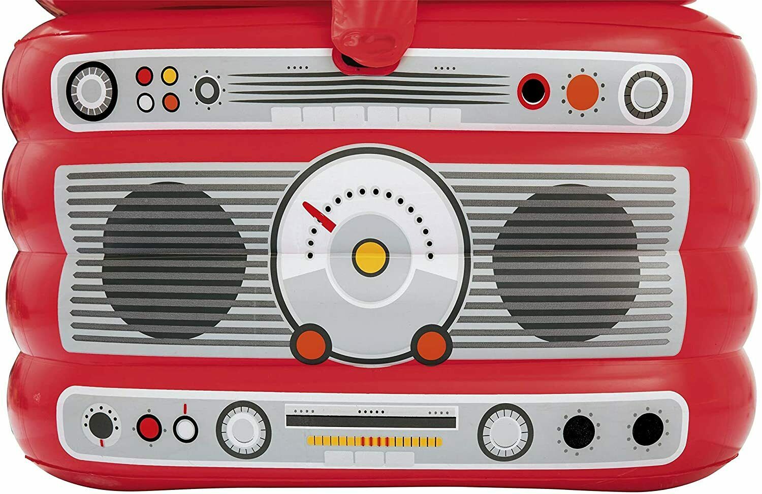 Our river floating cooler comes in a bright red color with a record player design, making it easy to spot even from a distance. Fitted onto the floating ice chest is a large cover that keeps your drinks well-insulated and prevents the ice from quickly melting.