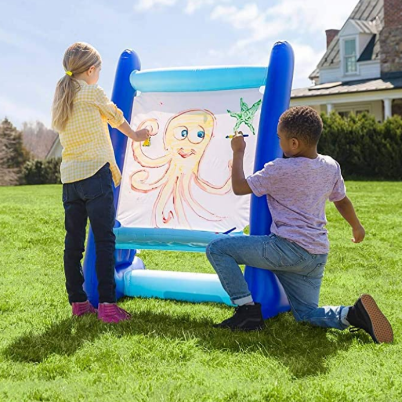 Easily inflate the toddler easel with a hand-held or electric pump and have it up in minutes. This way, your child can stay entertained throughout the day while creating masterpieces over and over again.
