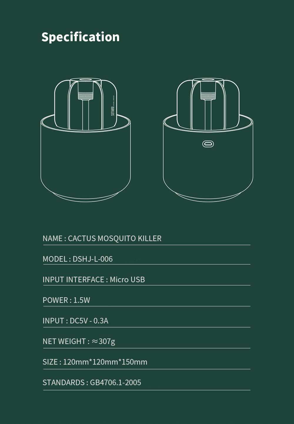 | Features | - Inhalation physical mosquito killing - One button control, easy to operation - 360° air-duct design, all-around attraction - Non-toxic & Non-volatile - UV light : Smokeless, Tasteless, Dustless - Removable mosquito storage box, easy to wash |