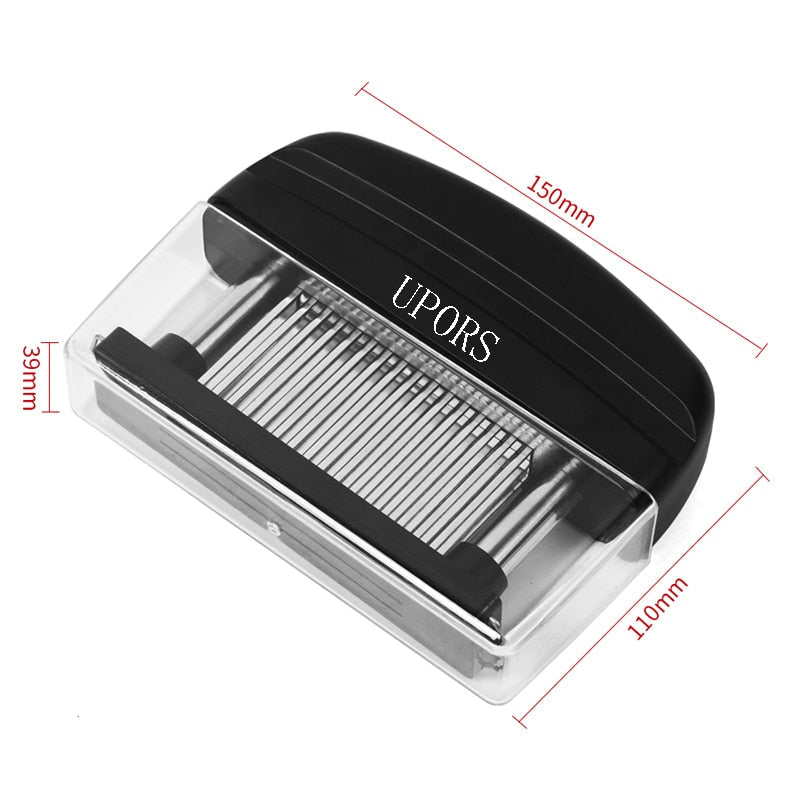 This Stainless Steel Meat Tenderizer with sharp blades was designed to enhance the effects of marinades and make the meat much more juicy and flavorful. Equipped with 48 razor-sharp blades, our meat tenderizer creates tiny holes within the meat without changing the overall shape or appearance and actually reduces cooking time by up to 40%!