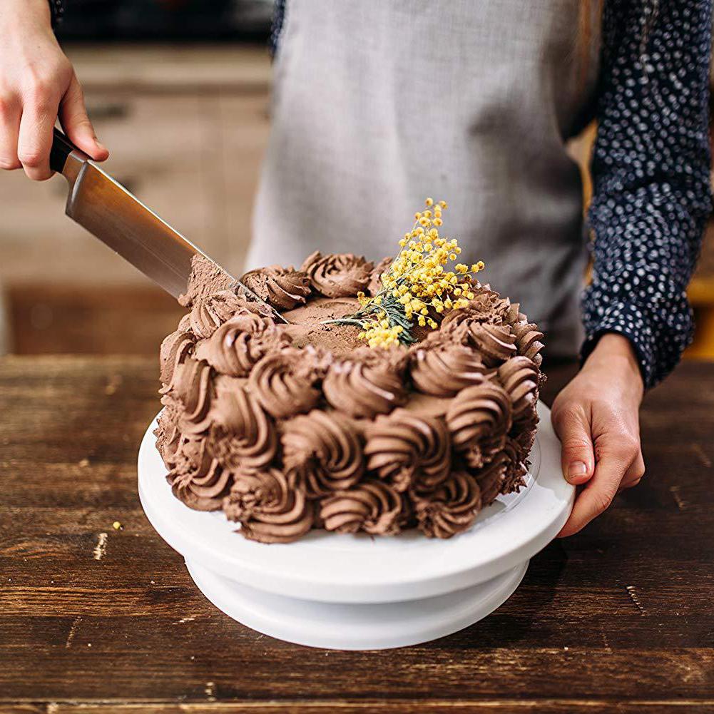 Not only does the cake decorating tools have dozens of decorative piping tips included, but it also comes with a cake stand that doubles as a lazy susan. With the lazy susan spinning at a full 360 degrees, you'll be able to seamlessly ice layers of cakes.